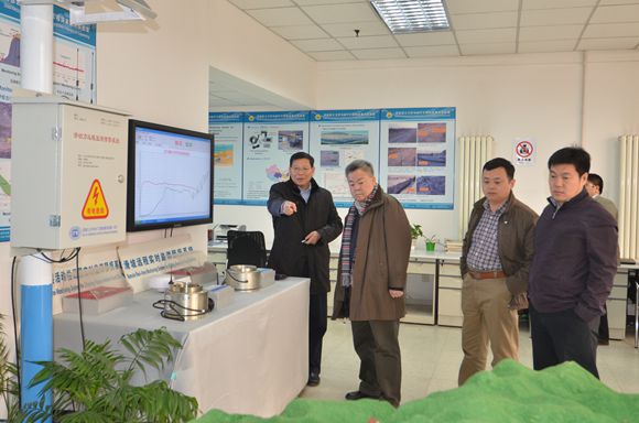 邓铭江局长一行认真考察了岩爆动力学实验系统、恒阻大变形锚杆拉伸实验系统和滑坡灾害远程监测预报实验系统。何满潮教授进行了详细的讲解,并与客人就共同关心的技术问题进行了热烈的讨论。