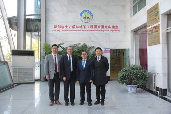 10月31日上午,悉尼科技大学常务副校长Iain Watt教授、澳大利亚教育管理集团总裁李新庆先生以及该集团全球事务与合作关系部部长段玉才先生一行访问深部国家重点实验室,实验室副主任杨晓杰教授接待了来宾。