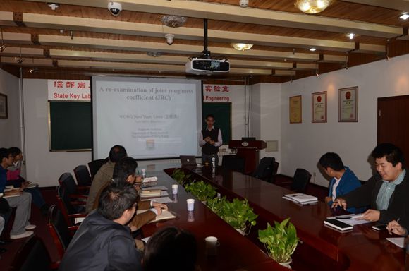 Louis N Y Wong教授的报告题目为“A re-examination of joint roughness coefficient”,报告中,Louis采用幽默风趣的语言分享了自己的研究经历,给大家提供了一条发现科学问题和解决科学问题的新思路。