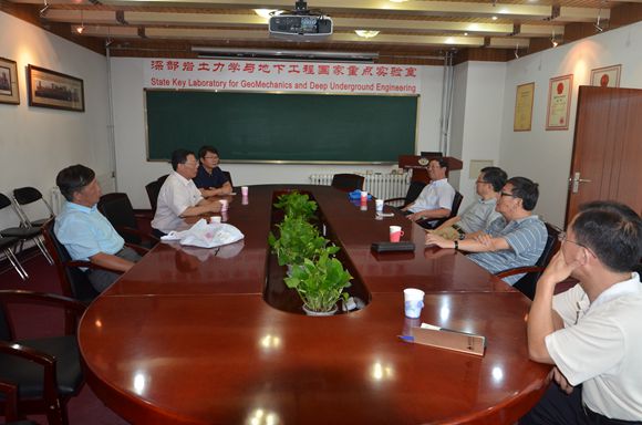 2015年9月3日下午,中国科学院院士、中国地质大学(北京)青藏高原地质研究中心主任王成善教授及中国科学院院士、中国地震局地质研究所所长、地震动力学国家重点实验室主任张培震教授等一行四人应邀参观深部岩土力学与地下工程国家重点实验室,实验室主任何满潮院士和副主任孙晓明教授、杨晓杰教授陪同参观。