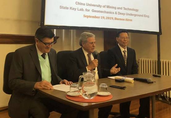 仪式上,Oscar A. Varde代表阿根廷工程院授予何满潮阿根廷工程院院士证书和徽章,并表示热烈祝贺。他对何满潮院士取得的学术成就给予了高度评价,并介绍了阿根廷工程院的情况。阿根廷岩石力学学会秘书长Rocca教授向与会来宾详细介绍了何满潮院士的学术背景和学术成果。仪式后,何满潮院士应邀作了题为“软岩研究新进展”的专题学术报告。