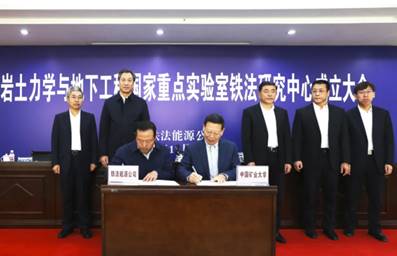 会上,何满潮、陈荣德分别代表深部岩土力学与地下工程国家重点实验室和铁法能源公司,共同签署了战略合作协议。双方决定以国家“十三五”重点研发项目“煤矿深井建设与提升基础理论及关键技术”为契机,强强联手,建立战略合作关系;通过合作开展深层次技术研究,建立行业技术高地;努力提升核心竞争力,为科技创新成果推广应用以及科技人才培养搭建平台。双方决定联合组建“深部岩土力学与地下工程国家重点实验室铁法研究中心”。