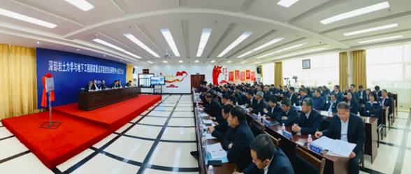 中国科学院院士、中国矿业大学(北京)深部岩土力学与地下工程国家重点实验室主任何满潮,中国矿业大学(北京)副校长王家臣,铁法能源公司党委书记、董事长陈荣德,党委副书记、副董事长、总经理佟大光,深部岩土力学与地下工程国家重点实验室常务副主任孙晓明、郭志飚出席中心成立大会。铁法公司分管生产、技术、安全工作的副总师级以上领导,机关生产、技术、安全部门负责人,各生产及生产辅助单位行政正职、本部八个矿井和矿建公司总工程师、技研中心全体人员及铁法研究中心课题组成员参加成立大会。同时,铁法公司域外单位设分会场,通过视频同步参加会议。何满潮、王家臣、陈荣德先后致辞。