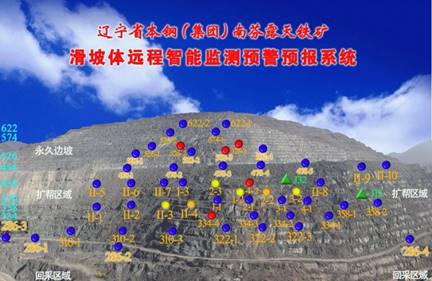 (南芬露天铁矿滑坡牛顿力监测点分布,照片来源:张海江)
