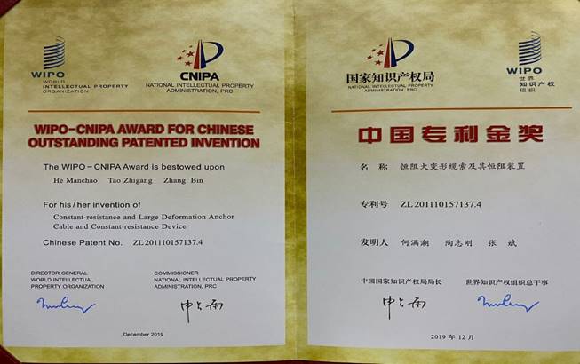 以何满潮院士为第一发明人的发明专利“恒阻大变形缆索及其恒阻装置”(专利号:ZL201110157137.4)”凭借其国际领先的技术水平、显著的经济与社会效益,获第二十一届中国专利金奖。中国科学院院士、深部岩土力学与地下工程国家重点实验室主任、中国矿业大学(北京)何满潮教授受邀参加,同时作为金奖获得者嘉宾发言并作题为“NPR新材料知识产权保护,促进经济高质量发展”主旨演讲报告。