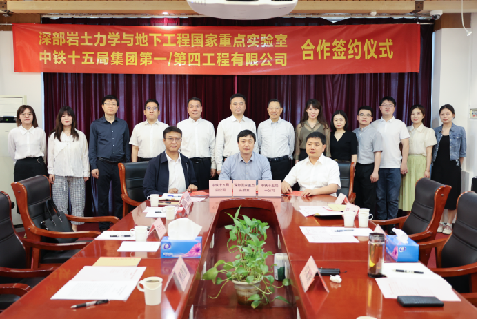 在热烈的掌声中,深部国家重点实验室与中铁十五局的合作签约协议圆满结束,标志着实验室与中铁十五局的合作迈入了更加紧密的新阶段,双方将强强联合、优势互补,共同携手为国家科技创新作贡献。