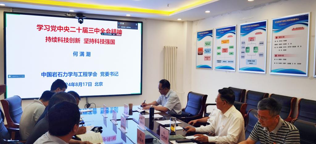 会上,隧道国重实验室主任何满潮院士做题为《学习党中央二十届三中全会精神,持续科技创新,坚持科技强国》的主题报告,领学党中央二十届三中全会精神。