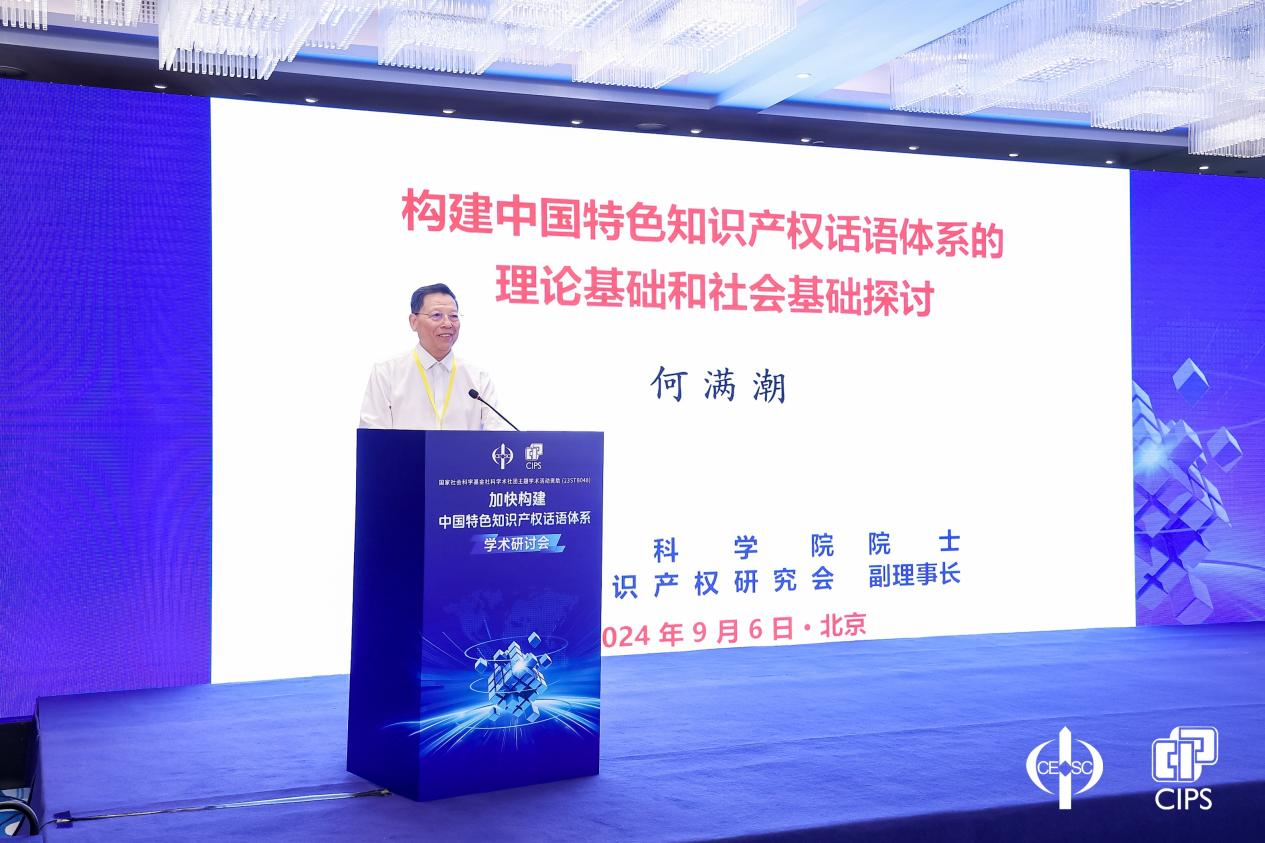 2024年9月6日,中国经济社会理事会与中国知识产权研究会在北京联合举办了“加快构建中国特色知识产权话语体系”学术研讨会,此次研讨会汇聚了来自政府、学术界、产业界等多方精英,共同探讨中国知识产权话语体系构建的思路与举措。中国科学院院士、隧道国重实验室主任何满潮受邀参加并发表主旨演讲。