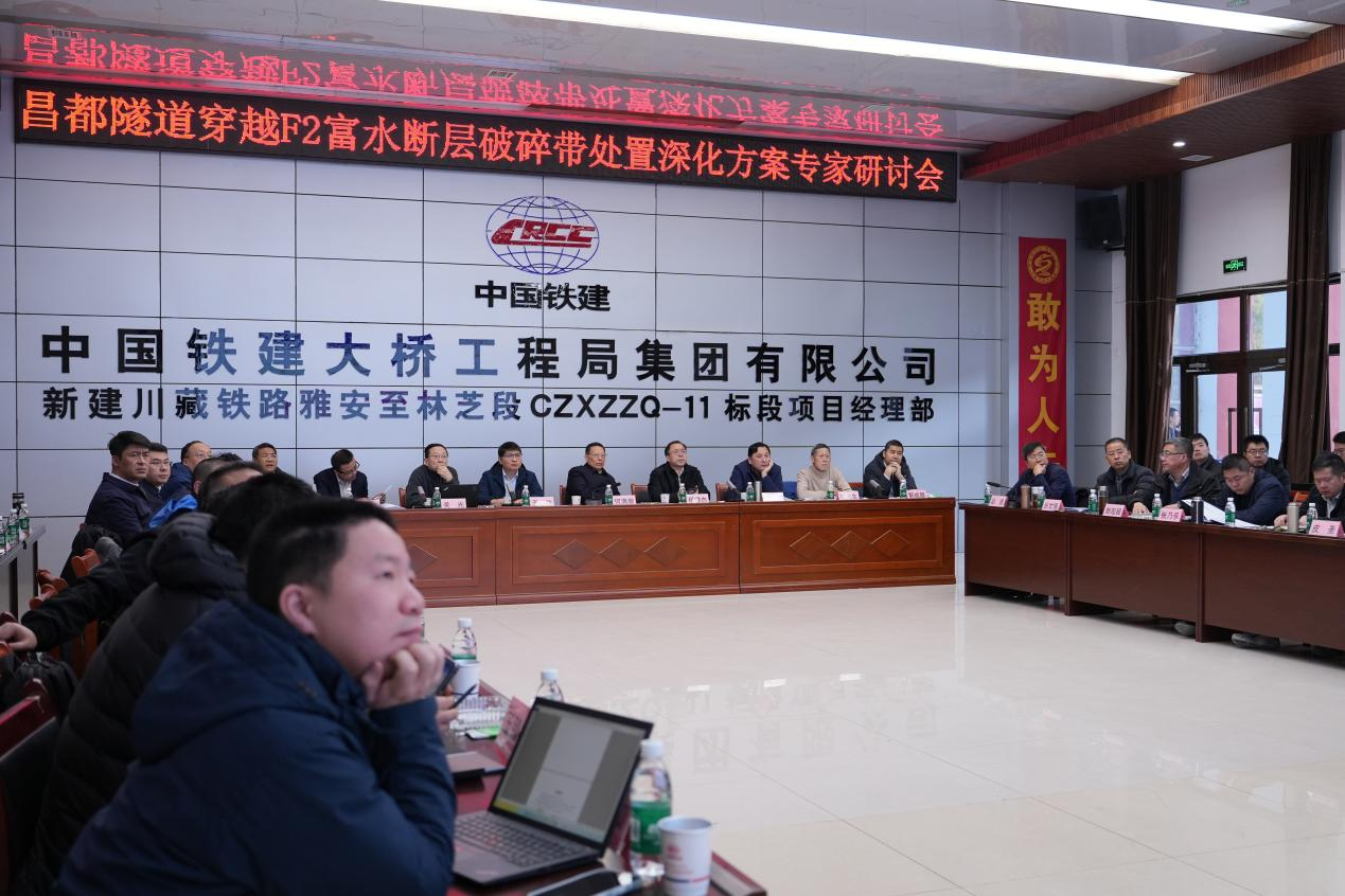 随后,在中国铁建大桥工程局集团项目部召开了高原隧道穿越富水断层破碎带处置深化方案专家研讨会。会上,中铁一院、中铁大桥局的同志就突涌段工程概况、突涌过程、处置措施、地质条件特征及方案建议进行了详细的汇报。何满潮院士就现场提出的问题逐一详细解答,从隧道突涌水问题所面临的主要难点、隧道突涌水主控因素、隧道突涌水灾变机理及控制对策出发,针对突泥涌水问题提出处理的“三超原则”,即超前探测、超前注浆、超前加固。参会的现场工程技术人员和与会专家对何院士严谨治学的科学精神和深入浅出、通俗易懂、解决实际问题的讲解给予了高度评价。