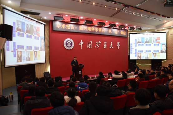 1月3日上午,何满潮院士在中国矿业大学徐州南湖校区图书馆报告厅为全校师生作了题为“新时期科学研究——从‘道’做起”的学术报告。报告会由中国矿业大学人才办公室主任周福宝教授主持。